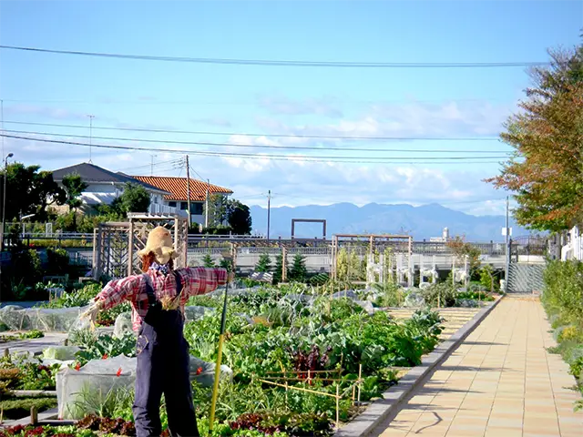 体験会場のアグリス成城は、東京都世田谷区の小田急「成城学園前」駅の西口正面に位置する、都心の貸菜園です。都心の駅チカとは思えない広大な敷地と、多様な植物、そして充実した設備が特徴です。