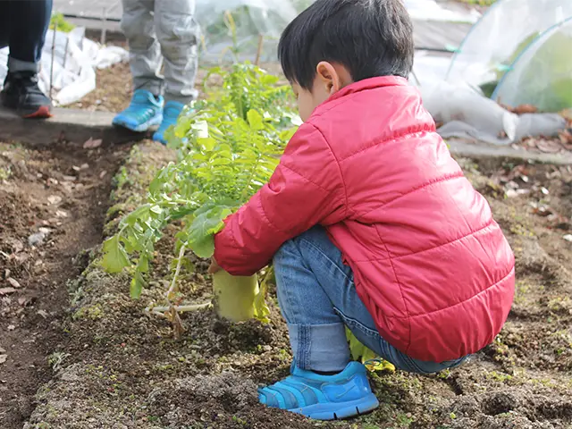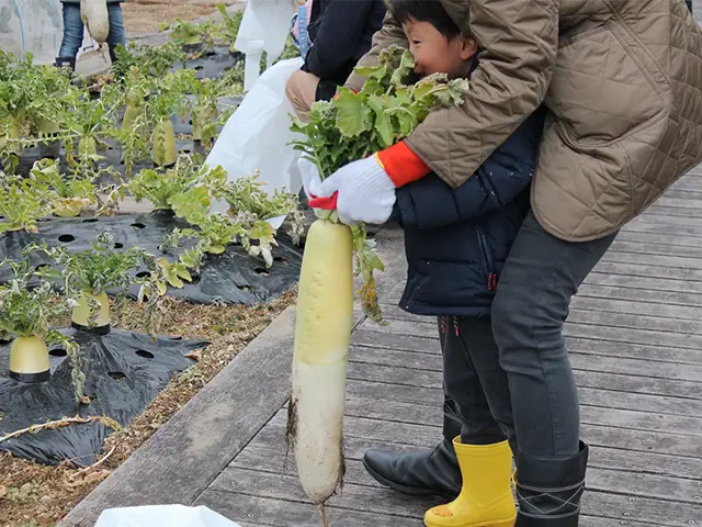 菜園の先生が、大根の特徴や見分け方について教えてくれるので、親子で「野菜探偵」になって、大きな大根を探りましょう。