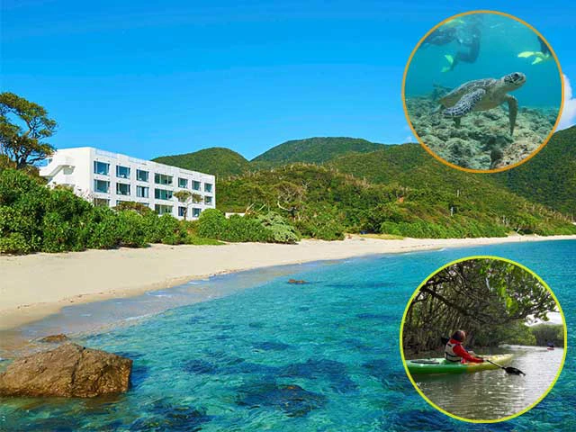 世界自然遺産の奄美大島の最南端にあるリゾートホテル「THE SCENE」は目の前がヤドリ浜という絶景の砂浜です。この海には、ウミガメが生息しており、美しい珊瑚礁や熱帯魚が迎えてくれるので、先生たちと希少な海の生き物を探しにいきましょう。