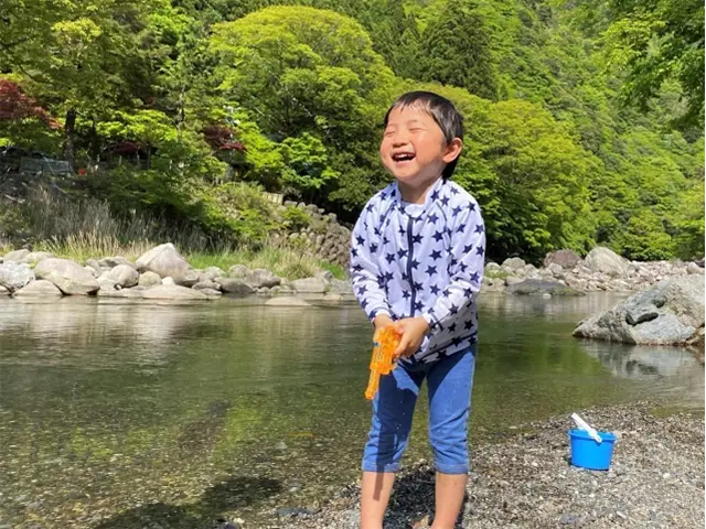 浅瀬のある清流では、生き物探しもできるので、自然の中での遊びをめいっぱいお楽しみください。